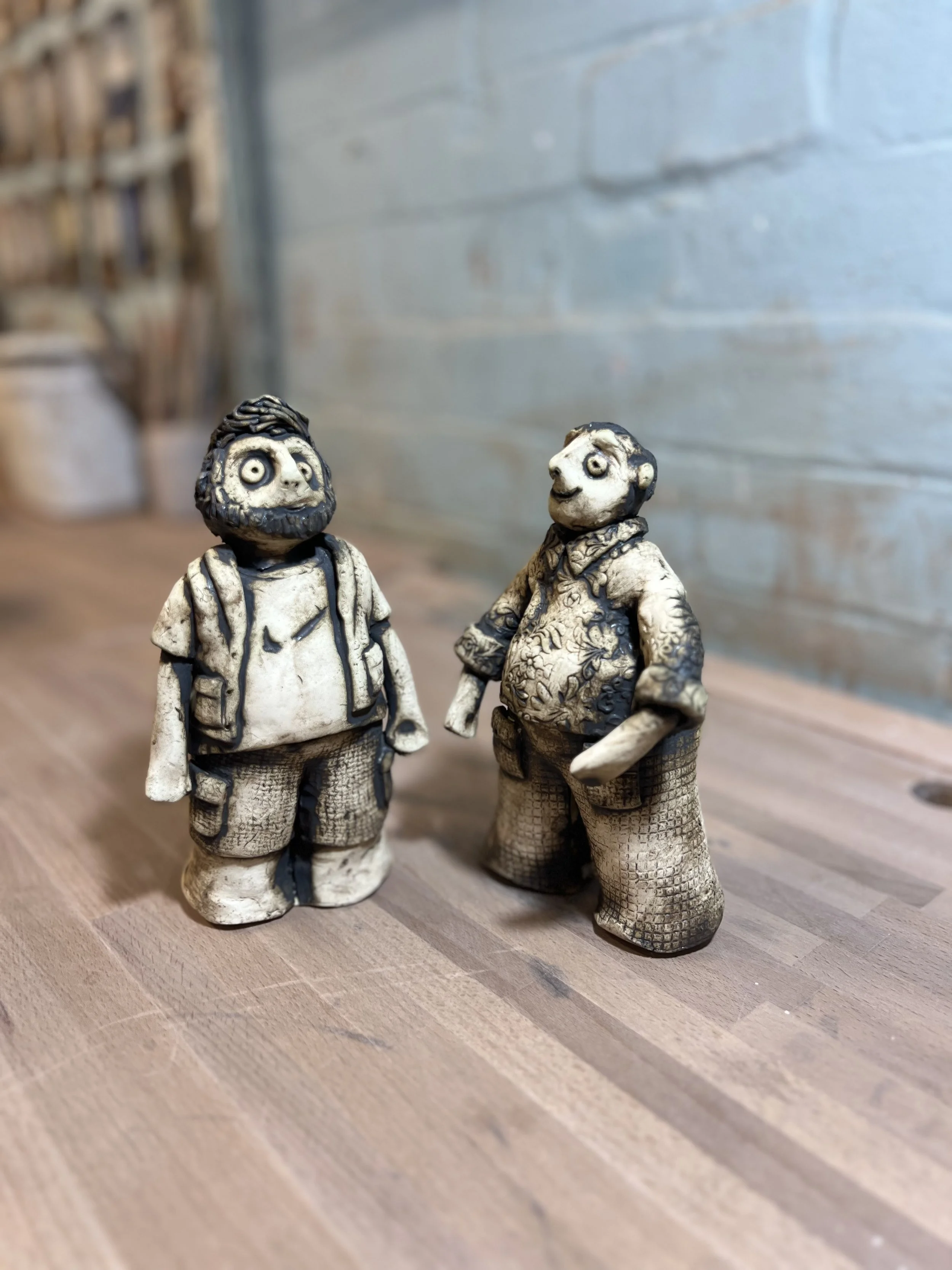 After you have completed the session the pieces will be dried over a week or so to ensure no water content is remaining and then fired. Charlotte will then coat all the pieces in a specially developed black glaze and wipe back to bring out the details. The figures are then re-fired to 1160 degrees and can then be collected and taken to their forever home.